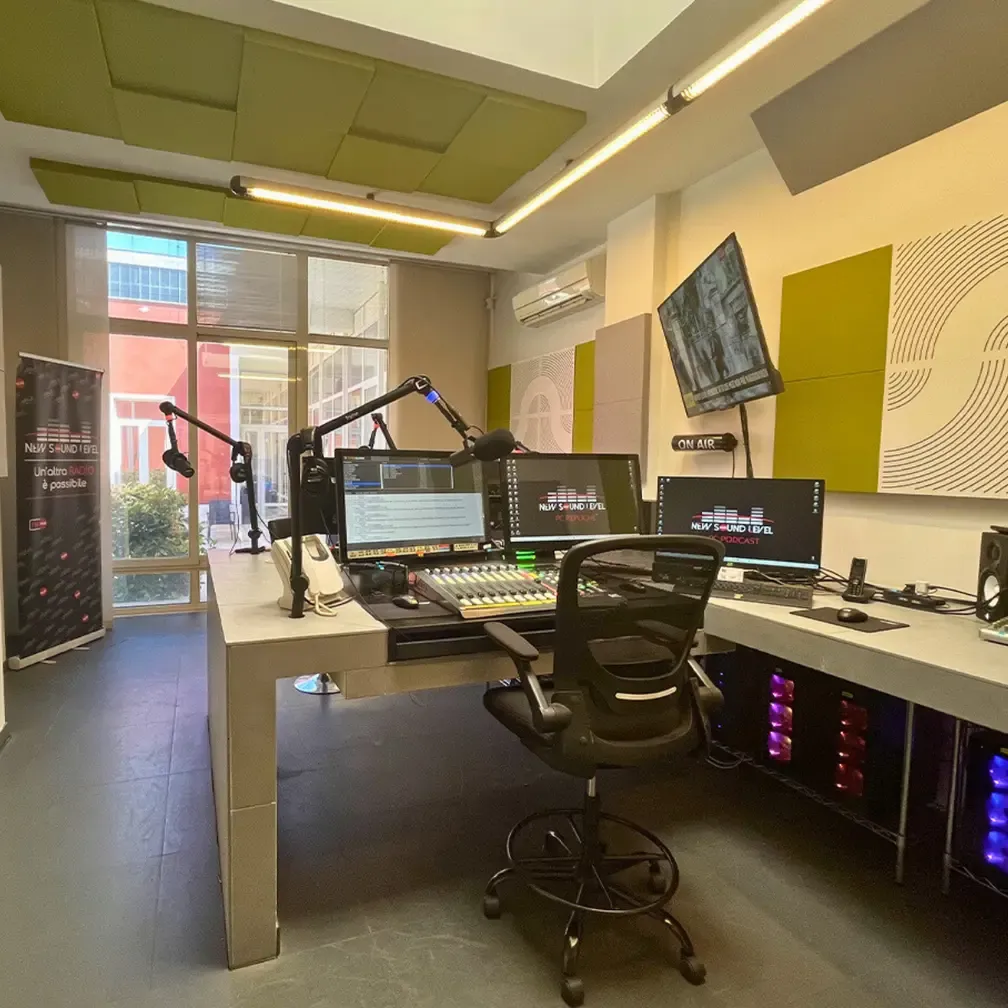 Радио НСЛ, истакнута радио станица у Риму, искусила је значајне проблеме одјека у својој главној просторији за емитовање. Ови акустични изазови довели су до губитка јасноће звука, што је негативно утицало на квалитет преноса уживо и снимљеног садржаја. Станица је тражила решење за побољшање аудио прецизности, истовремено обезбеђујући визуелно привлачно и професионално окружење.
