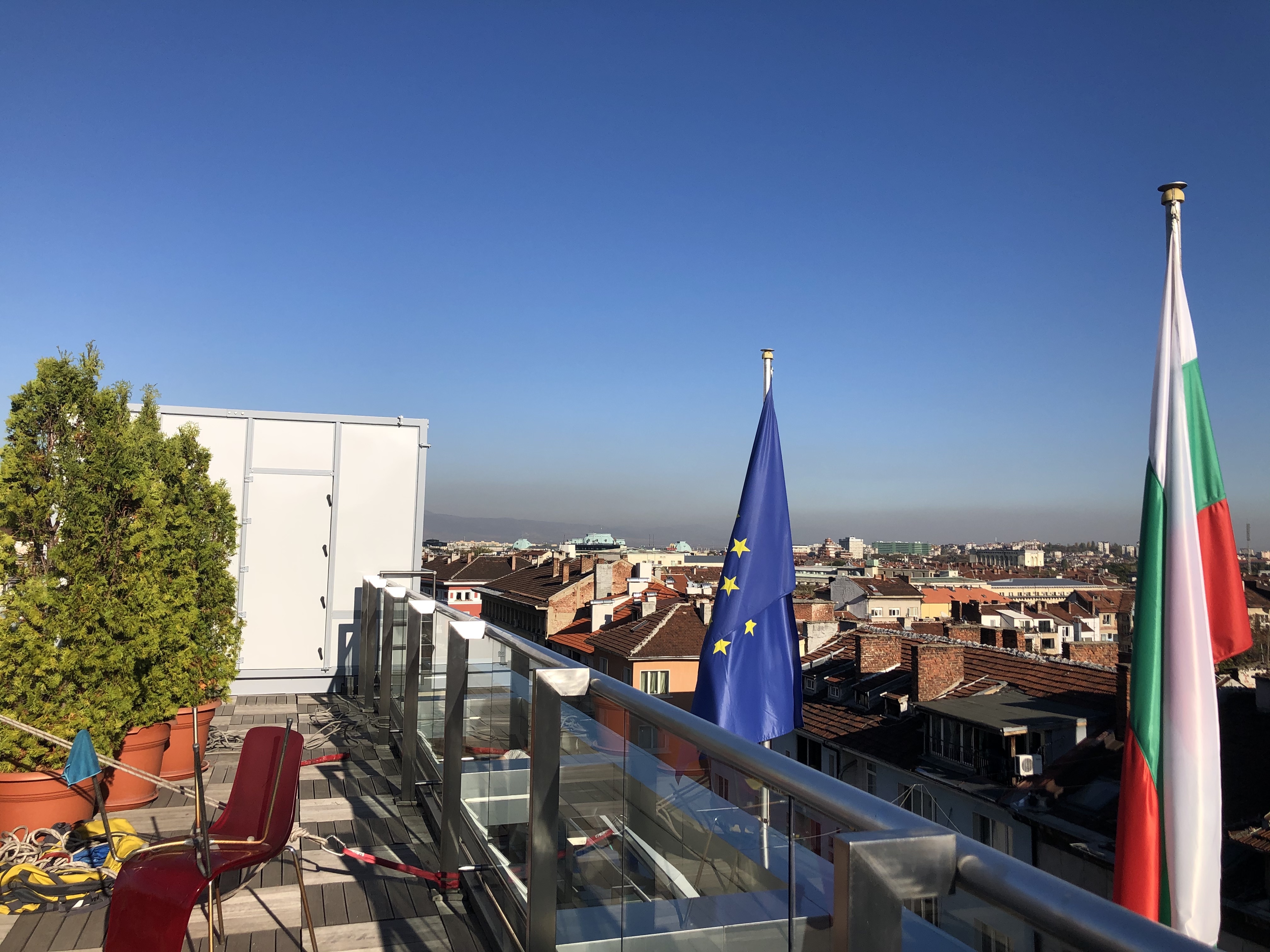 Зграда Европског парламента у Софији налази се у прометној централној зони, окружена стамбеним зградама. Клима комора на крову ради непрекидно, обезбеђујући циркулацију ваздуха током целог дана, док са шестог спрата ради дизел агрегат у дворишту. Ова поставка је довела до честих жалби на буку од стране становника суседних зграда, који су изразили забринутост због ометајућих звукова из јединице за климатизацију и генератора .