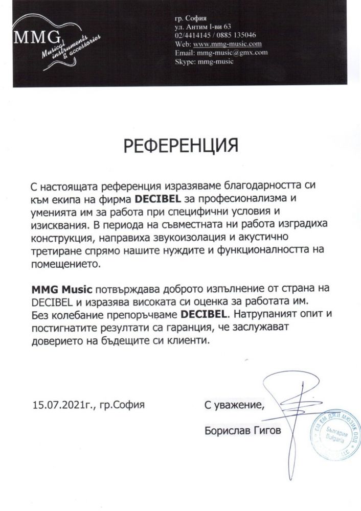 "MMG Music preporučuje dobre performanse DECIBEL-a i izražava visoku zahvalnost za njihov rad. Ne oklevamo da preporučimo DECIBEL."
